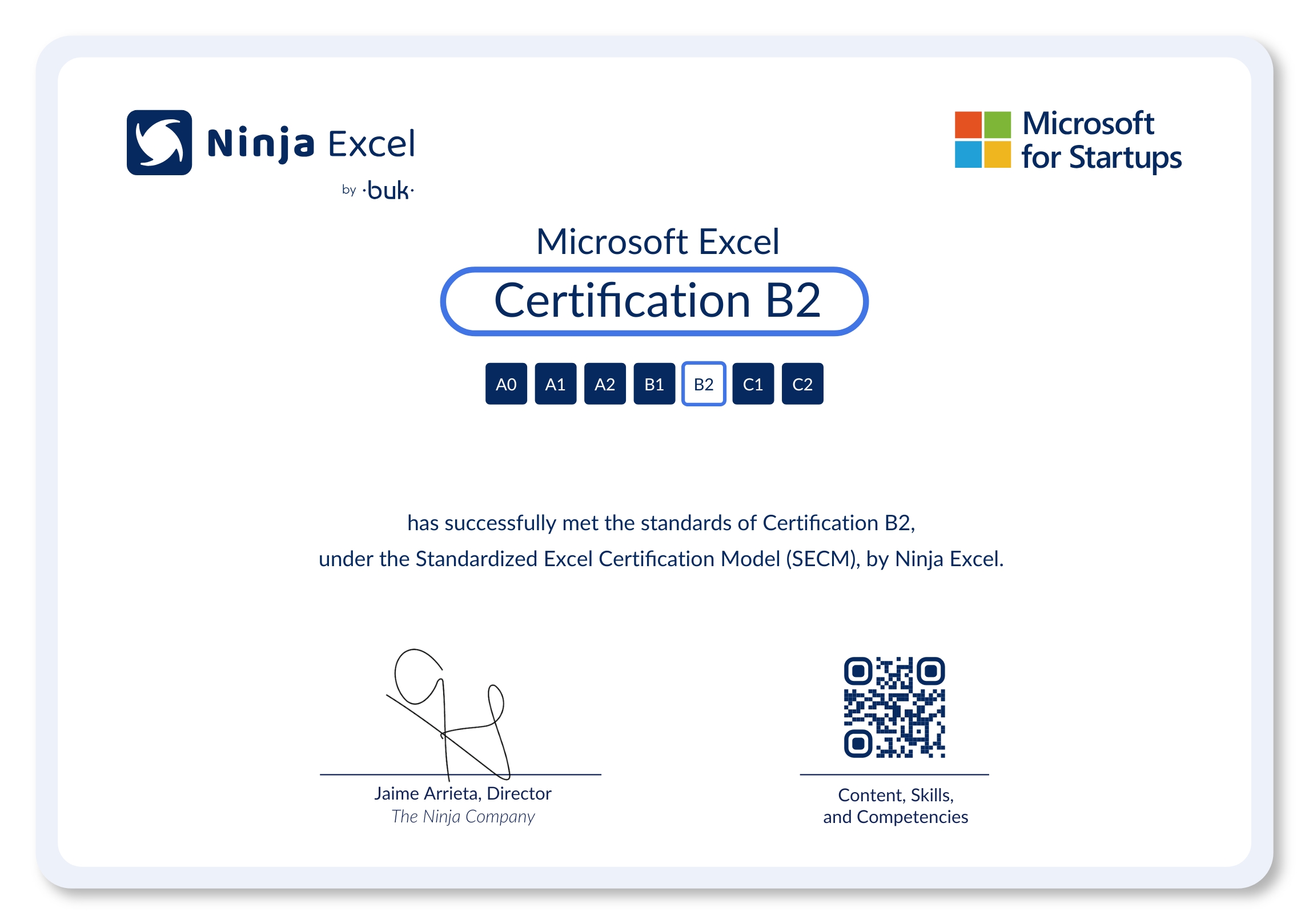 - SECM: 7 levels – from A0 to C2 – organizing specific Excel skills